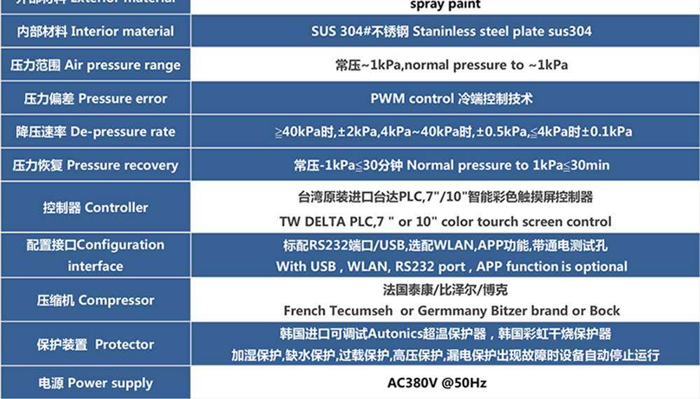 新款高低溫低氣壓試驗箱參數(shù)表