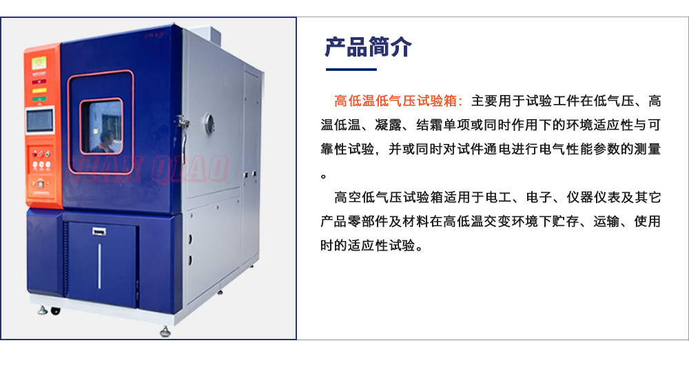 產品型號:JQTA-225 品牌:劍 喬 用途:高低溫低氣壓試驗箱:主要用于試驗工件在低氣壓、高溫低溫、凝露、結霜單項或同時作用下的環(huán)境適應性與可靠性試驗,并或同時對試件通電進行電氣性能參數(shù)的測量。咨詢熱線:13829135130