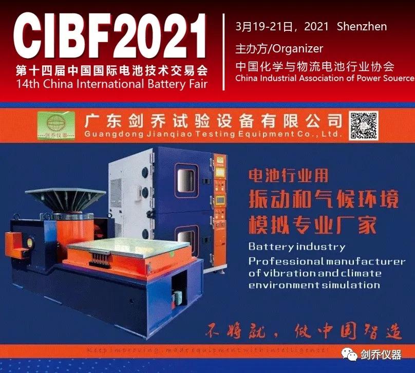 2021年3月19-21日,廣東劍喬試驗(yàn)設(shè)備有限公司【劍喬儀器】將攜旗下最新試驗(yàn)設(shè)備亮相2021年的第一場展會(huì)—(CIBF2021)“第十四屆中國國際電池技術(shù)交流會(huì)/展覽會(huì)”。現(xiàn)場展示:振動(dòng)試驗(yàn)系統(tǒng)、溫濕度振動(dòng)三綜合箱、電池?zé)釣E用試驗(yàn)箱、電池短路試驗(yàn)箱、高加速?zèng)_擊試驗(yàn)臺、高低溫防爆試驗(yàn)箱、等試驗(yàn)設(shè)備及動(dòng)力電池相關(guān)試驗(yàn)解決方案。