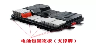 電池包固定板(外殼支撐腳)是電池樣品的振動(dòng)應(yīng)力傳輸路徑的最先導(dǎo)入點(diǎn),試驗(yàn)樣品的與振動(dòng)臺(tái)面耦合安裝的固定位置和固定點(diǎn)數(shù)必須符合裝車狀況,或試驗(yàn)樣品的與夾具耦合安裝的固定位置和固定點(diǎn)數(shù)必須符合裝車狀況。