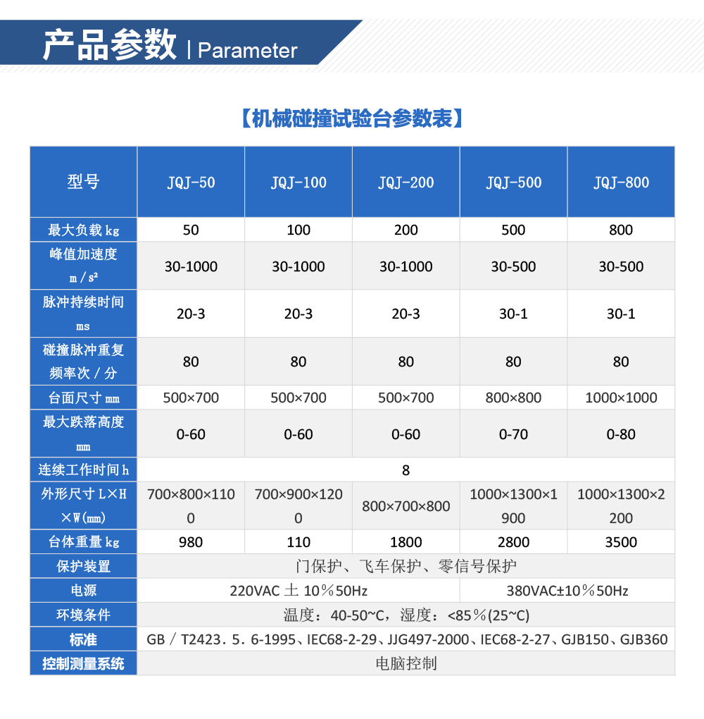 產品型號:JQJ-100 品牌:劍 喬 用途:機械碰撞試驗臺模擬仿真裝備及組件在使用與運輸過程中,可能遭遇的沖擊效應為主,并透過沖擊波于瞬間瞬時能量交換,分析產品承受外界沖擊環(huán)境之能力,試驗之目的在于了解其機咨詢熱線:13829135130