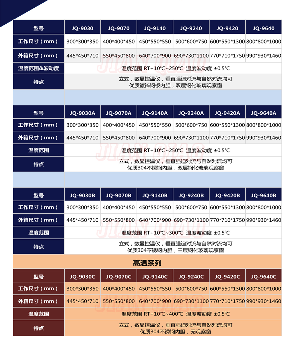 產(chǎn)品型號:JQ-9640 品牌:劍 喬 用途:精密高溫箱用于對電子電工、汽車摩托、航空航天橡膠、塑膠、金屬、船舶兵器、高等院校、科研單位等相關(guān)產(chǎn)品的零部件及材料在高溫恒溫變化的情況下,檢驗其各項性能指標。咨詢熱線:13829135130