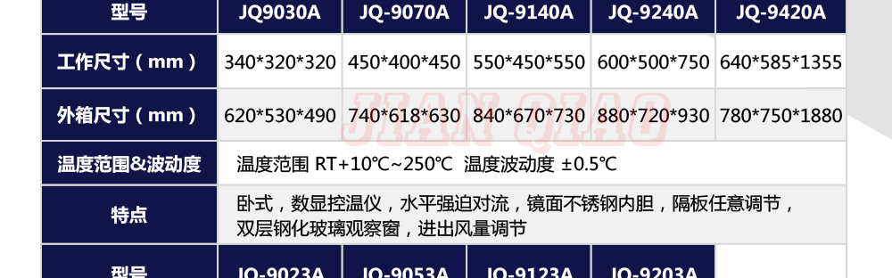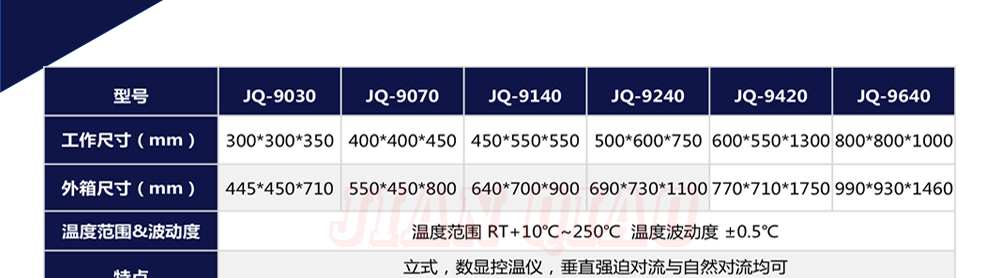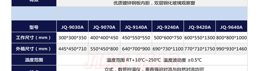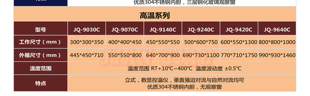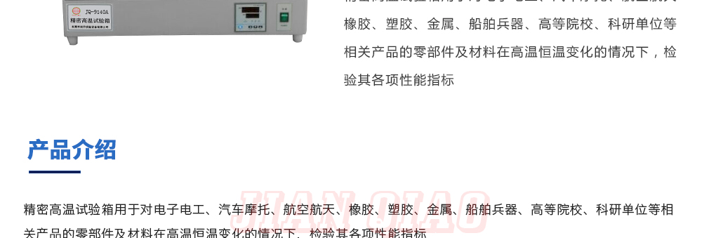 產(chǎn)品型號:JQ-9030 品牌:劍 喬 用途:精密高溫試驗箱用于對電子電工、汽車摩托、航空航天、橡膠、塑膠、金屬、船舶兵器、高等院校、科研單位等相關(guān)產(chǎn)品的零部件及材料在高溫恒溫變化的情況下,檢驗其各項性能指標(biāo)咨詢熱線:13829135130