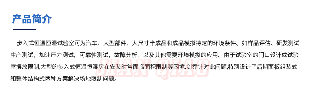 產品型號:JQWI-12(非標定制款) 品牌:劍 喬 用途:步入式恒溫恒濕試驗室可為汽車、大型部件、大尺寸半成品和成品模擬特定的環(huán)境條件。如樣品評估、研發(fā)測試生產測試,加速壓力測試,可靠性測試,故障分析,以及其他需要環(huán)境模咨詢熱線:13829135130