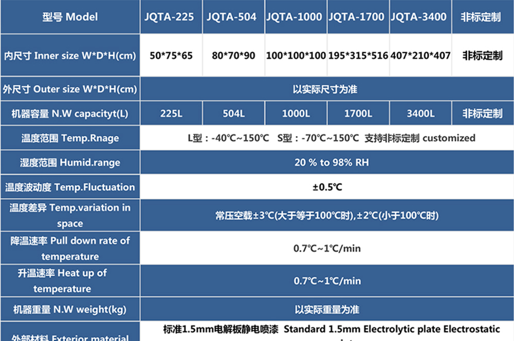新款高低溫低氣壓試驗箱參數(shù)表
