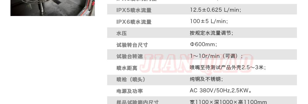產(chǎn)品型號(hào):IPX-1234 品牌:劍 喬 用途:可程式淋雨試驗(yàn)箱適用于電工電子產(chǎn)品(包括組件)、燈具照明產(chǎn)品、汽車摩托車零部件外殼和密封件等產(chǎn)品做外殼防護(hù)等級(jí)測(cè)試(IP 防水等級(jí)試驗(yàn)),模擬其產(chǎn)品在運(yùn)輸和使用期間可能受咨詢熱線:13829135130