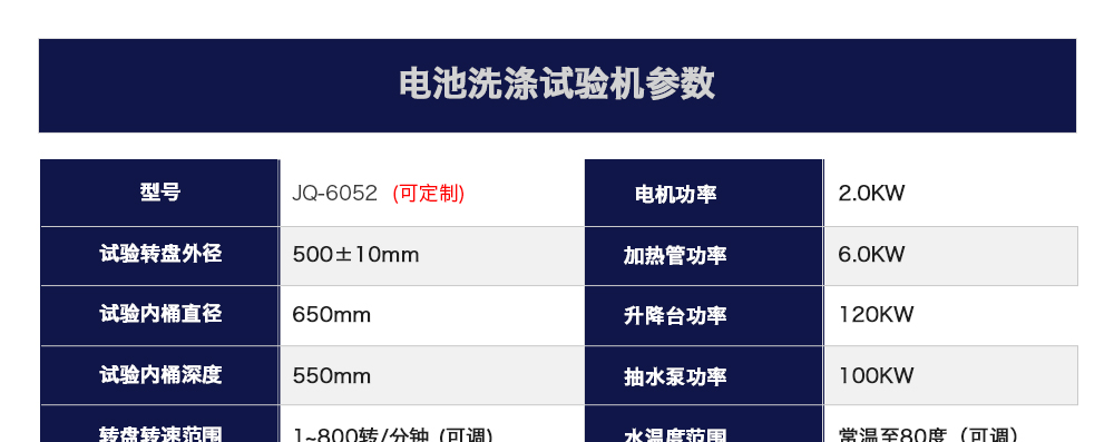 產(chǎn)品型號:JQ-6052 品牌:劍 喬 用途:電池洗滌試驗機(jī),本實用新型涉及電池試驗設(shè)備技術(shù)領(lǐng)域,特指一種電池洗滌試驗機(jī),架體設(shè)有測試箱體,測試箱體的下部設(shè)有洗滌箱,測試箱體內(nèi)設(shè)有轉(zhuǎn)動槳,測試箱體內(nèi)側(cè)面設(shè)有烘咨詢熱線:13829135130