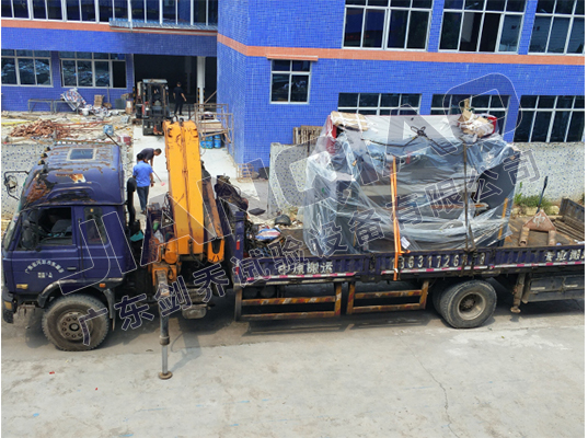 注:(圖為廣東劍喬引進(jìn)數(shù)控折彎?rùn)C(jī)現(xiàn)場(chǎng)卸貨圖)