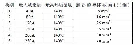 2.2.1 最大電流承載能力:該測試是為了確定線束在開始發(fā)生過度熱降解和/或具有超額電阻之前能夠承受的最大試驗(yàn)電流。實(shí)驗(yàn)的合格標(biāo)志是在規(guī)定的載流范圍內(nèi),整個連接系統(tǒng)內(nèi)任何一點(diǎn)的溫升不可超過55度或不可超出產(chǎn)品的使用極限。目前不同規(guī)格線束將依據(jù)線纜截面積進(jìn)行載流劃分,具體可參看下表2: