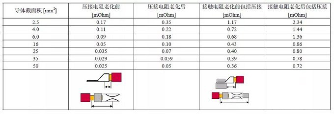 2.2.3 電壓降測試:該項(xiàng)測試是為了確定在標(biāo)稱電流狀態(tài)下由于導(dǎo)線壓接和接觸面區(qū)域的電阻而產(chǎn)生的電壓降??梢愿鶕?jù)電壓降計(jì)算出總連接電阻。根據(jù)不同的線束規(guī)格,線束的壓接點(diǎn)的接觸電阻可參看表3: