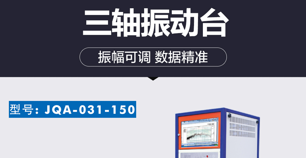 產(chǎn)品簡介:三軸振動臺(型號:JQA-031-150)是由:振動臺、功率放大器和振動測控制系統(tǒng)組成了一套完整的振動試驗系統(tǒng),依照相關的國家和國際標準(如:MIL-STD、DIN、ISO、ASTM、IEC、ISTA、GB、GJB、JIS、BS等)在實驗室條件下模擬振動環(huán)境,測試各種振動試驗應用領域中的沖擊強度和可靠性。在實驗室借助振動試驗機系統(tǒng)可以模擬再現(xiàn)正弦、隨機、諧振搜尋與駐留、典型沖擊和道路仿真等模式。對于產(chǎn)品的質(zhì)量保證、新品研發(fā)都是必不可少的。