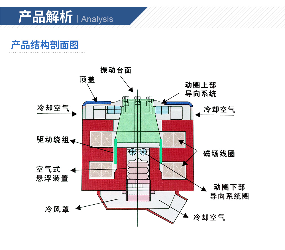 性能特點(diǎn):●強(qiáng)制風(fēng)冷 ●正弦激振力范圍: 1kN ~ 70kN●兩倍的正弦沖擊力(2噸以上可選三倍) ●輕質(zhì)動(dòng)圈,優(yōu)化設(shè)計(jì),耐振性能強(qiáng)●中心氣囊承載能力強(qiáng),低頻性能好 ●可配置水平滑臺(tái)●風(fēng)機(jī)冷卻效果好,噪音低 ●使用頻率可從1Hz開(kāi)始●隨機(jī)與正弦激振力1:1 ●位移峰峰值最大可達(dá)100mm●耳軸氣囊隔震效果好 ●雙磁路設(shè)計(jì),漏磁低,磁場(chǎng)均勻●正弦、隨機(jī)、沖擊等試驗(yàn)功能 ●高效率、高可靠性功率放大器系統(tǒng)特點(diǎn):◎一階共振頻率高、使用頻率寬優(yōu)化的動(dòng)圈骨架結(jié)構(gòu)設(shè)計(jì),特別是對(duì)傳統(tǒng)結(jié)構(gòu)的動(dòng)圈骨架傳力角板等薄弱環(huán)節(jié)進(jìn)行增強(qiáng)設(shè)計(jì),有效提高了傳力剛度;采用膠接與螺釘連接的復(fù)合固定繞線環(huán)筒和繞線環(huán)筒增強(qiáng)膠孔的新結(jié)構(gòu),增強(qiáng)了繞組的剛度。顯著提高了動(dòng)圈的一階共振動(dòng)頻率,超過(guò)了國(guó)際同類產(chǎn)品。◎動(dòng)圈繞組可靠性高獨(dú)創(chuàng)的動(dòng)圈繞組加強(qiáng)環(huán)的新結(jié)構(gòu)和新工藝,顯著提高了動(dòng)圈繞組工作在大推力、高加速度振動(dòng)、沖擊和高溫環(huán)境中的耐振可靠性。◎風(fēng)冷效率高創(chuàng)新的電動(dòng)臺(tái)冷卻風(fēng)道設(shè)計(jì):改進(jìn)了進(jìn)風(fēng)結(jié)構(gòu),上磁環(huán)用長(zhǎng)槽型進(jìn)風(fēng)道取代圓孔型進(jìn)風(fēng)道;勵(lì)磁線圈采用蜂窩式風(fēng)道、中磁環(huán)采用雙層風(fēng)流式風(fēng)道、下磁環(huán)采用斜楔型風(fēng)道等新結(jié)構(gòu),顯著提高了冷卻效果。◎冷卻風(fēng)機(jī)冷卻風(fēng)機(jī)具有獨(dú)特的風(fēng)道等結(jié)構(gòu)設(shè)計(jì),風(fēng)機(jī)冷卻效果好,噪音低。◎水平和垂直試驗(yàn)帶水平滑臺(tái)的電動(dòng)振動(dòng)臺(tái)可以用于水平和垂直試驗(yàn),兩個(gè)方向的切換方式簡(jiǎn)單,翻轉(zhuǎn)方便。◎采用IGBT模塊功放采用性能可靠的MOSFET和IGBT模塊,具有很高的穩(wěn)定性和可靠性。◎安全性能產(chǎn)品符合歐洲標(biāo)準(zhǔn)測(cè)試要求,在功放上裝有緊急停止開(kāi)關(guān),有效應(yīng)對(duì)突發(fā)事件。符合美國(guó)UL和CE安全要求。