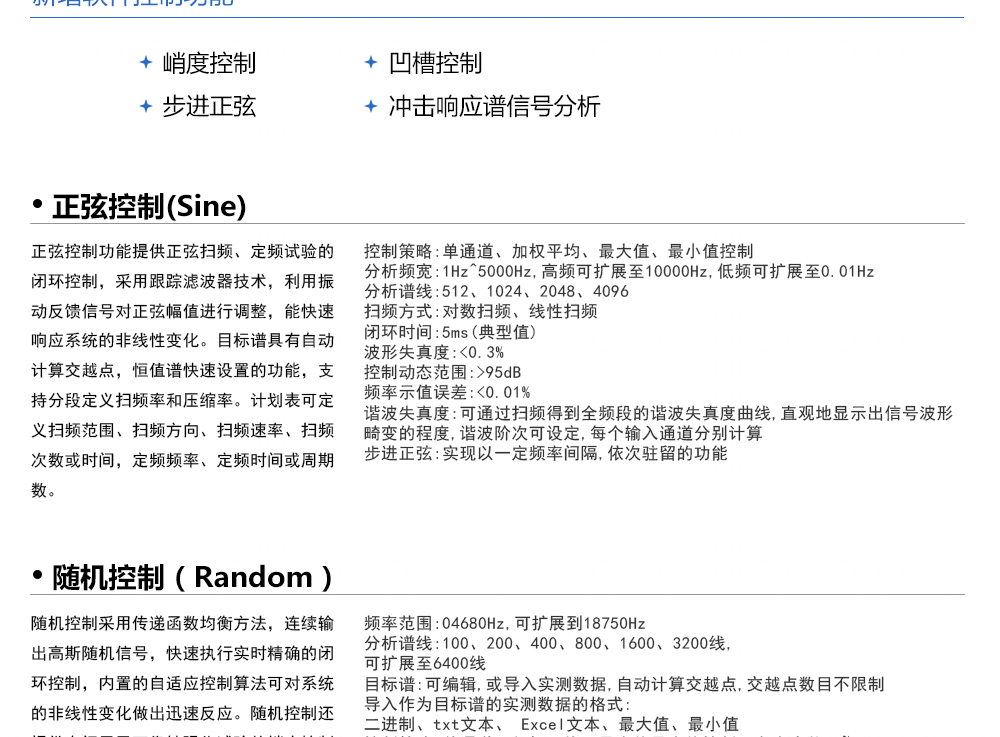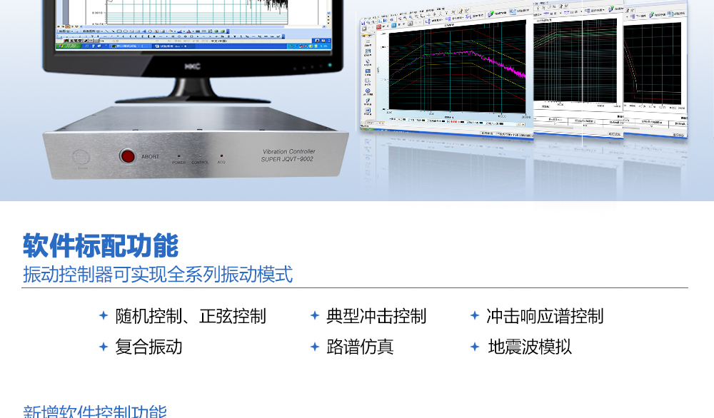 產(chǎn)品型號(hào):JQVT-9000系列 品牌:劍 喬 用途:振動(dòng)控制器可實(shí)現(xiàn)全系列振動(dòng)模式,包括隨機(jī)控制、正弦控制,典型沖擊控制、沖擊響應(yīng)譜控制、復(fù)合振動(dòng)、路譜仿真以及地震波模擬。同時(shí),為了進(jìn)一步創(chuàng)新振動(dòng)控制技術(shù),以適應(yīng)更咨詢(xún)熱線(xiàn):13829135130