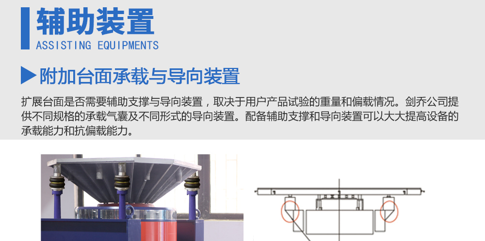 產(chǎn)品型號: 品牌:劍 喬 用途:擴(kuò)展臺面是否需要輔助支撐與導(dǎo)向裝置,取決于用戶產(chǎn)品試驗(yàn)的重量和偏載情況。劍喬公司提供不同規(guī)格的承載氣囊及不同形式的導(dǎo)向裝置。配備輔助支撐和導(dǎo)向裝置可以大大提高設(shè)備的承載能咨詢熱線:13829135130